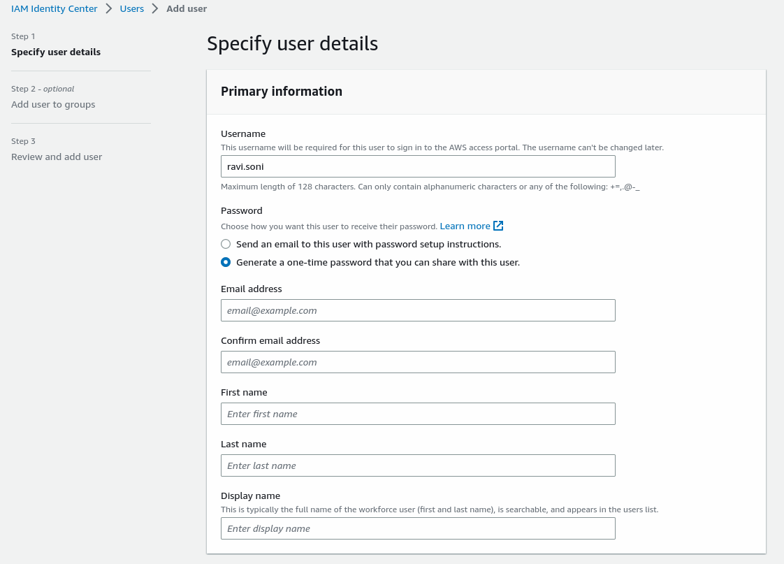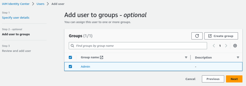 If AWS Organization is not enabled and set this process also would ask for enable and set AWS Organization with IAM Identity center enable process.