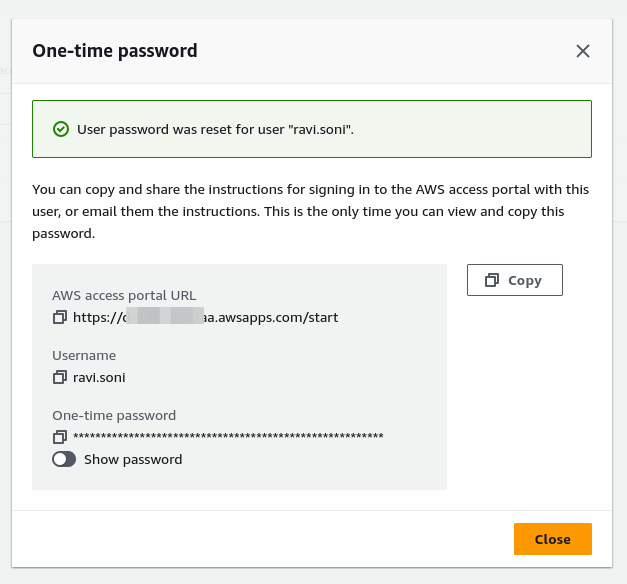 Now AWS IAM Identity Center is ready to log in. Open AWS Access portal URL to log in using the user and reset the password.